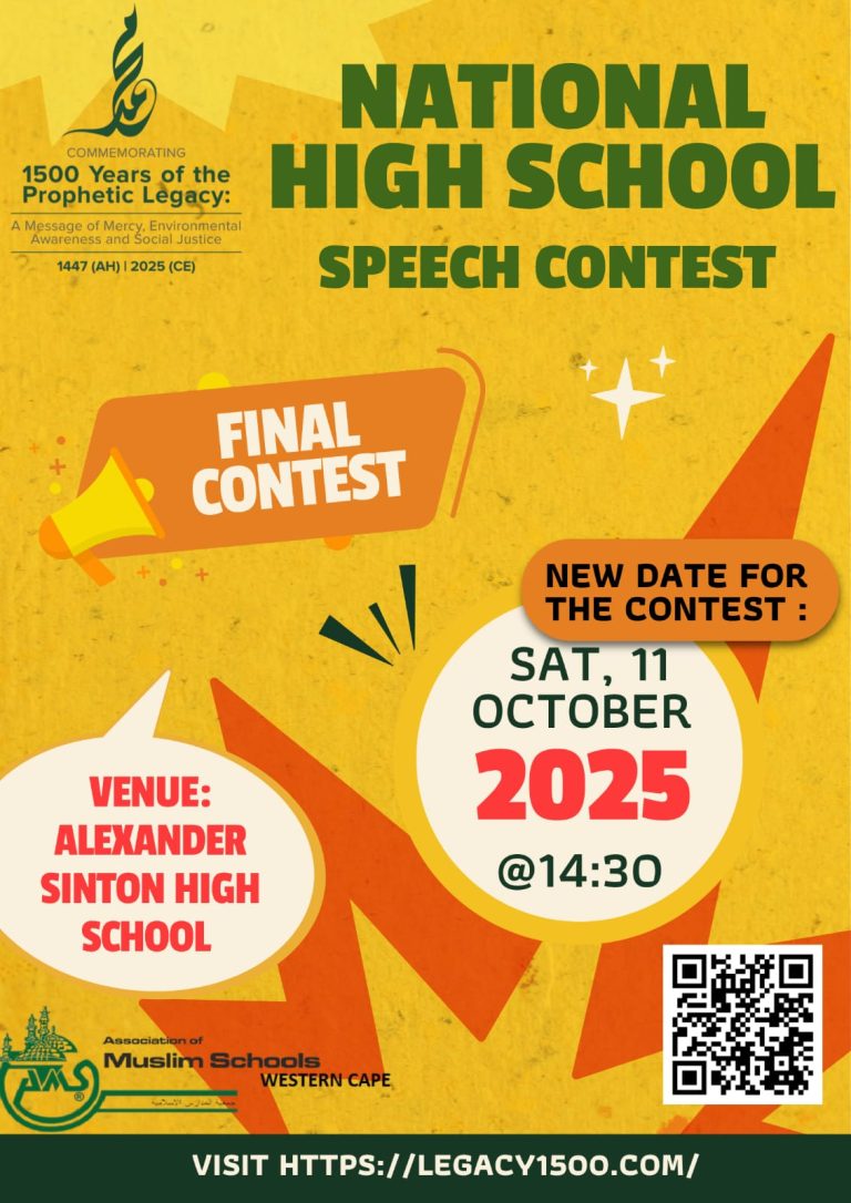 Open to all high school students in South Africa regardless of faith, gender, or creed. The challenge calls on participants to engage one of five powerful speech topics. These topics address urgent contemporary issues all through a Prophetic lens. Each topic invites thoughtful, ethical, and original speeches that reflect the Prophet’s mission as a mercy to all of creation.